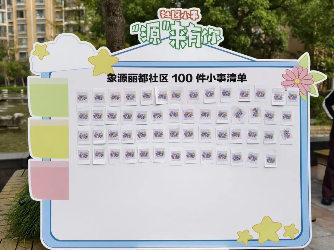基层治理的难点在“散”、痛点在“慢”、关键在“准”。活动前期,象源丽都以“楼组文化”为纽带,以“小事治理”为切口,通过楼组群广泛征集居民心声,楼道照明升级、非机动车规范停放、公共报箱维护、邻里互助帮扶、文化活动开展……这些看似琐碎却直击生活日常的“关键小事”被一一记录、梳理,形成《100件小事清单》。每一条清单都源于居民的真实需求,每一个条目都承载着对美好家园的期待,为楼组文化建设找准了“民生落点”,也为社区治理锚定了“发力方向”。